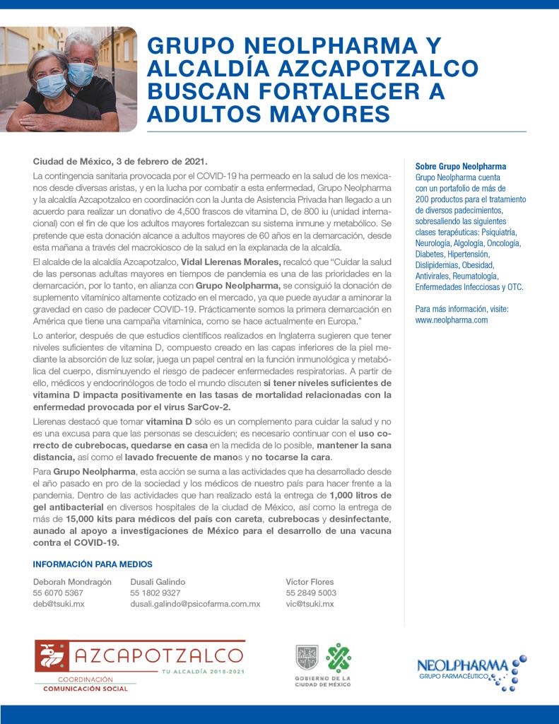 En unión con el gobierno de la alcaldía Azcapotzalco y la Junta de Asistencia Privada, Grupo Neolpharma tiene por objetivo beneficiar a adultos mayores de 60 años.