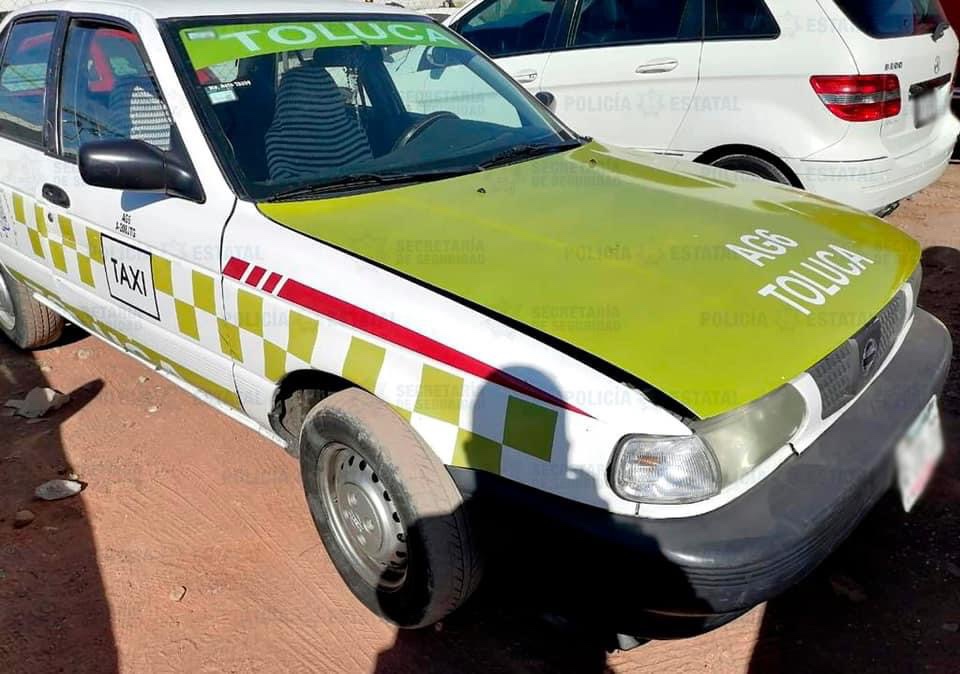 En el municipio de Toluca, agentes de la Secretaría de Seguridad (SS), en coordinación con agentes de la Fiscalía General de Justicia del Estado de México (FGJEM), aseguraron un vehículo con cromática de taxi que está involucrada en al menos siete hechos delictivos. Los uniformados detuvieron a los posibles responsables.