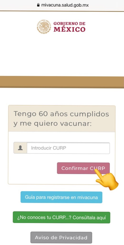 4. Ten a la mano tu CURP e ingrésalo en donde lo indica, después da click en confirmar CURP.