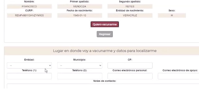 5. Cuando logres pasar a este paso, saldrá la confirmación del CURP, checa que los datos sean correctos y da click en •Quiero vacunarme•