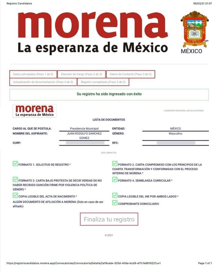 Juan Rodolfo Sánchez Gómez, presidente municipal de Toluca, presentó su registro para participar en el proceso interno del Partido Morena, lo que significa que intentará lograr, otra vez, la candidatura a la alcaldía y después, alcanzar la reelección.