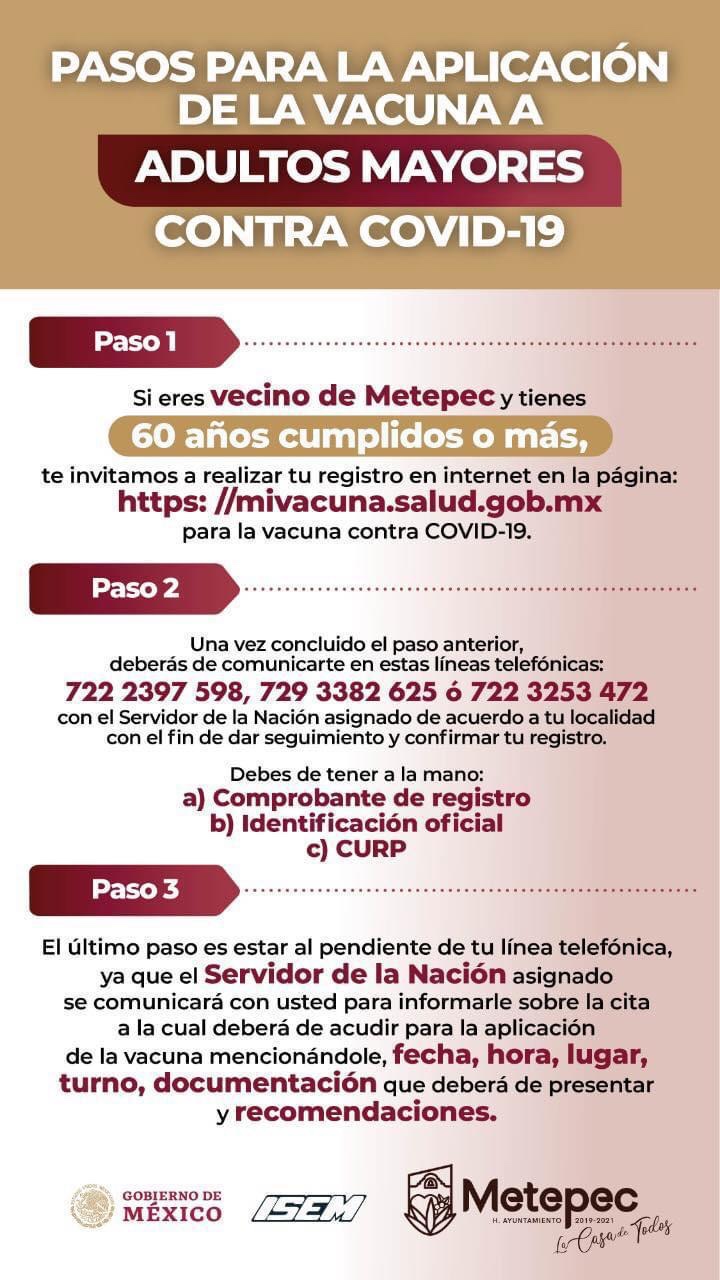 Mediante infografías en redes sociales, la alcaldesa de Metepec, Gamboa Sánchez, pidió que los adultos mayores o familiares, se comunicaran a tres líneas telefónicas para dar seguimiento y ratificar su registro en el programa de vacunación, lo cual resultó falso, además de causar incertidumbre en miles de personas, sobre todo aquellas que desde hace semanas están debidamente registradas ante instancias federales.
