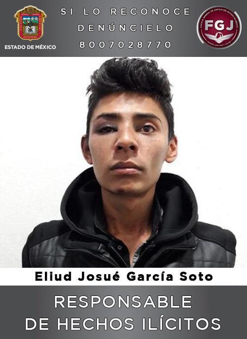 Naucalpan, Estado de México.- El Agente del Ministerio Público de la Fiscalía Especializada de Homicidio del Valle de Toluca, de la Fiscalía General de Justicia del Estado de México (FGJEM), consiguió sentencia condenatoria de 40 años de prisión para Eliud Josué García Soto, tras acreditar su participación en el asesinato de un elemento de la Policía Estatal, en Naucalpan, en 2019.