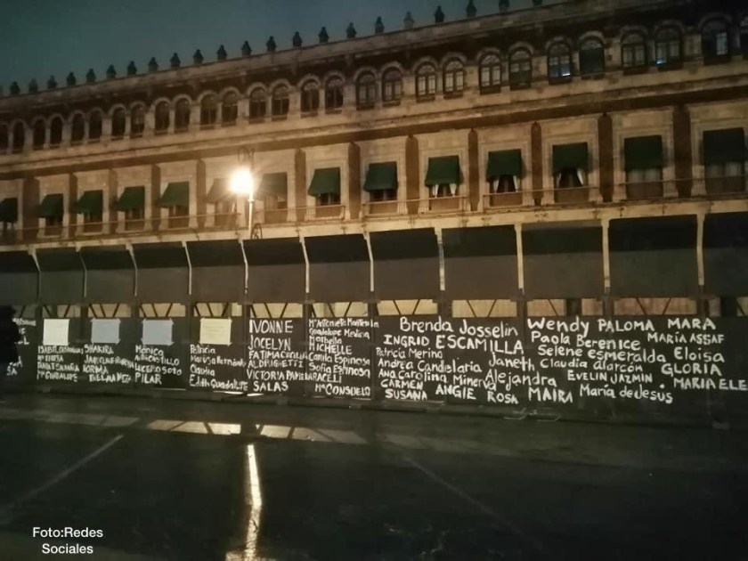 Camila Espinosa, Sofía Espinosa, Ingrid Escamilla, Claudia Alarcón, Maria Assaf y Lucero Soto son algunos de los muchos, muchísimos, nombres de mujeres que se van integrando a la larguísima lista de víctimas de feminicidio y de violencia en el país, escritos en el muro de hierro instalado para proteger todo, completito, el Palacio Nacional, en el que despacha el Presidente de México.