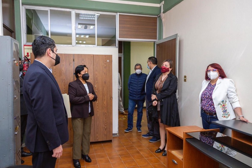 Acompañado de Rosalba Moreno Coahuila e investigadores, Raúl Ortiz realizó un recorrido por las instalaciones del Instituto de Estudios Sobre la Universidad, con la finalidad de identificar las necesidades de su comunidad.