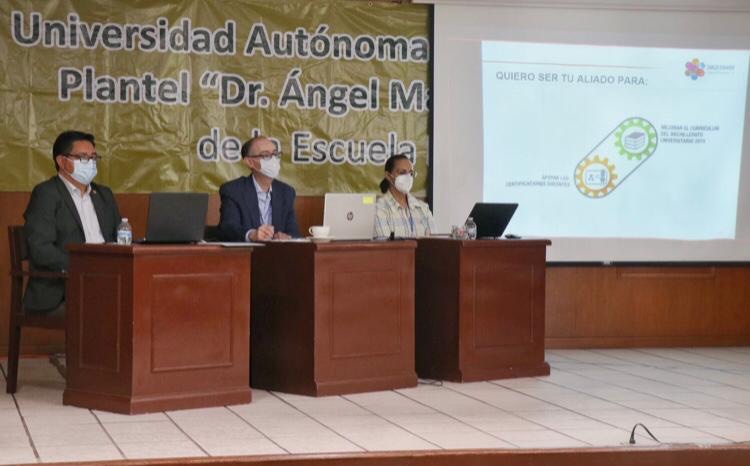 Al presentar su plan de trabajo “Integridad e Inclusión 2021-2025” a la comunidad unviersitaria del Plantel “Dr. Ángel María Garibay Kintana”, destacó que se debe echar mano de las habilidades tecnológicas con las que cuentan las nuevas generaciones para adaptar los contenidos temáticos, hacerlos más atractivos y fomentar la consulta de materiales digitales como repositorios o aplicaciones.