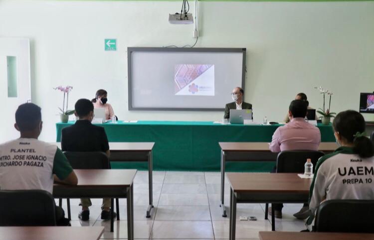 Durante el encuentro -presencial y virtual- el aspirante de la Rectoría de la UAEMéx escuchó las inquietudes y propuestas de estudiantes, docentes y personal administrativo del plantel «Mtro. José Ignacio Pichardo Pagaza» de la Escuela Preparatoria, ubicado al sur de la entidad.