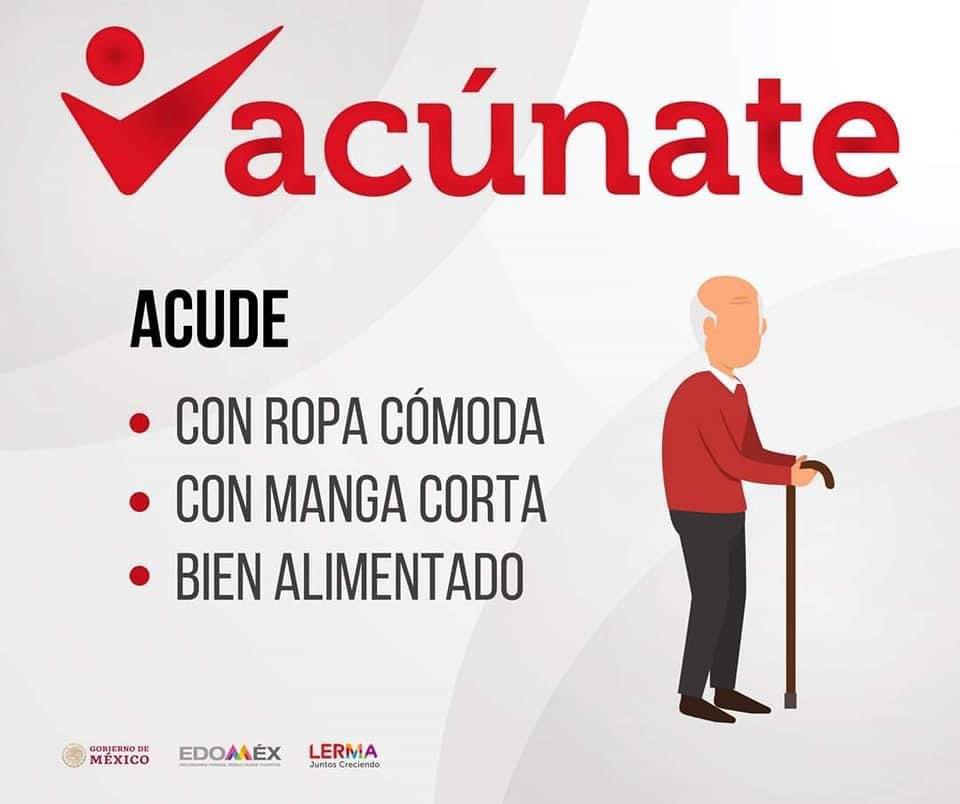 Se anuncia la Jornada de Vacunación Conjunta para Adultos Mayores, impulsada por el Gobierno de México, el Gobierno del Estado de México y el Ayuntamiento de Lerma, los días 1, 2 y 3 de abril de 2021, con dos módulos: Explanada del Mercado Municipal Lerma Centro y Universidad Tecnológica del Valle de Toluca Santa María Atarasquillo.