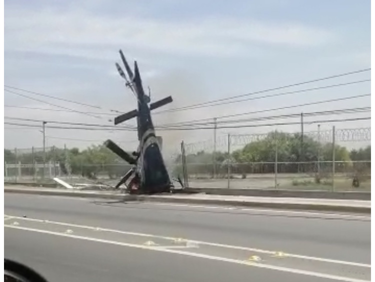 Un helicóptero cayó y posteriormente, se incendió, a la altura del kilómetros 19, de la carretera Apodaca-Laredo, con un saldo de una persona fallecida, el único tripulante.