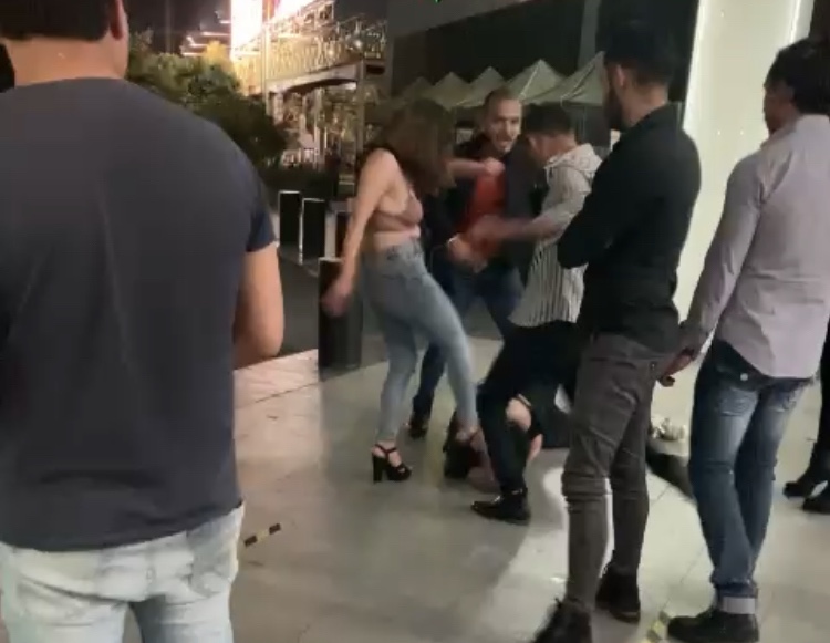 En el video, se pueden ver claramente las fuertes agresiones físicas entre los jóvenes, incluidas mujeres, y personal de seguridad de la propia plaza que, de manera pasiva, observa los hechos, además de ser notable la ausencia de elementos de Seguridad Pública.