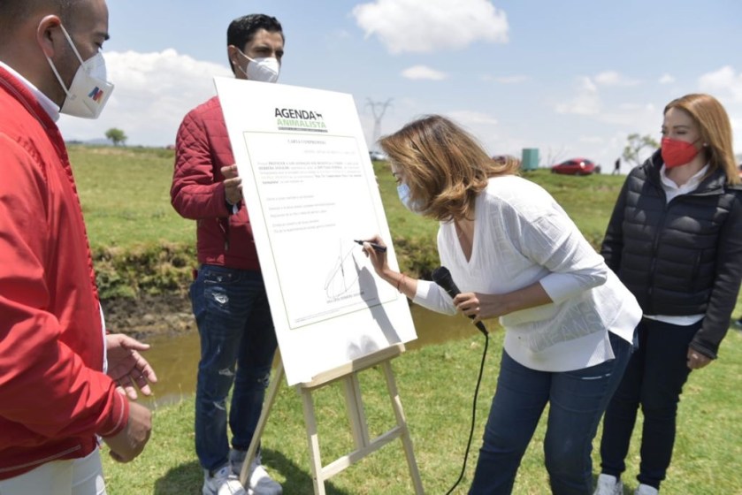 San Mateo Atenco, Estado de México, 16 de mayo de 2021.- La candidata de la coalición “Va por México”, del PRI, PAN y PRD, a la diputación federal del Distrito 27 con cabecera en Metepec, Ana Lilia Herrera Anzaldo, firmó los Compromisos con el Medio Ambiente y la Agenda Animalista, para que desde la Cámara de Diputados federal impulse leyes y gestione recursos para la preservación del medio ambiente y la protección de los animales.