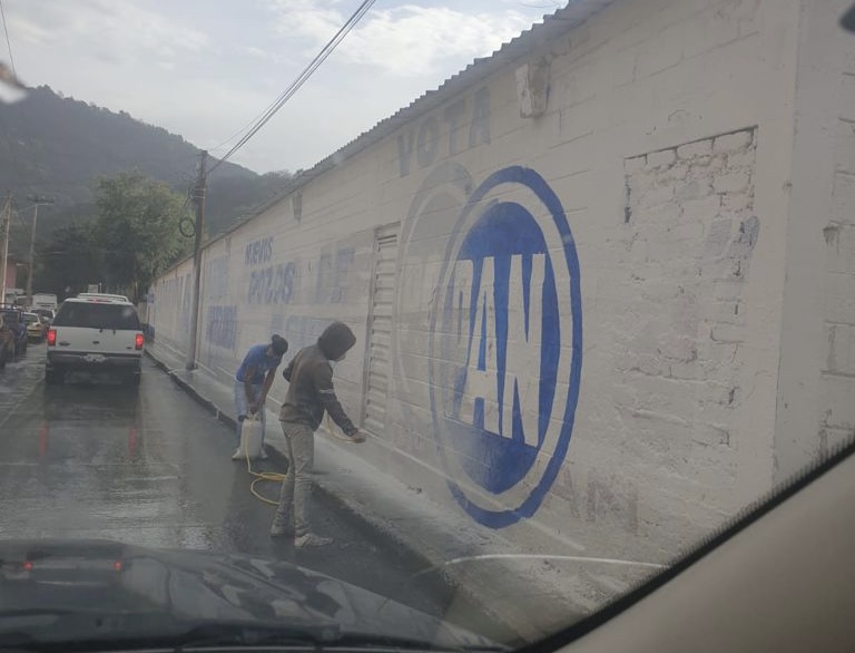 En flagrancia, los trabajadores del comentarista deportivo, Enrique Garay, fueron sorprendidos blanqueando bardas en la comunidad de Dos Ríos, de las cuales Acción Nacional cuenta con los permisos para anunciar a sus abanderados.