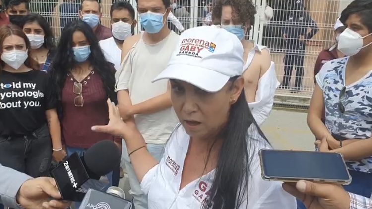 En uno de los videos, según el comunicado oficial emitido por Gamboa Sánchez, “se identifica muy bien a una golpeadora que desde la banqueta lanzaba objetos contundentes y líquidos hacia el grupo de brigadistas voluntarios de Gaby Gamboa” – cuando lo que la mujer arroja a transeúntes, son mitades de cáscaras de naranja exprimidas”. Dice el boletín que “más adelante, cuando intenta llegar a la candidata es contenida por el equipo morenista”, lo cual no se ve en ningún video.
