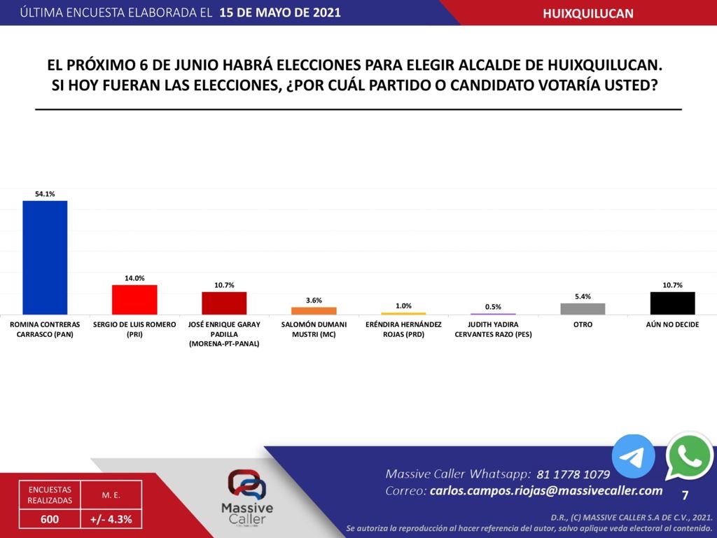- La última encuesta, de Massive Caller, coloca a Romina Contreras con más de 40 puntos por arriba de sus adversarios políticos.