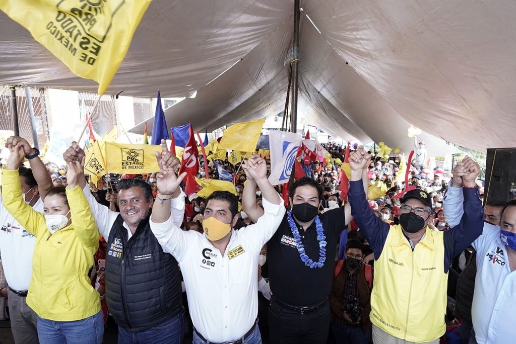 Al acompañar a las candidatas y candidatos a las presidencias municipales y diputaciones locales y federales de estos municipios, Vargas del Villar recordó que los partidos que integran la Alianza “Va por el Estado de México”, PAN, PRI y PRD, son los actores políticos que han construido México y sus instituciones.