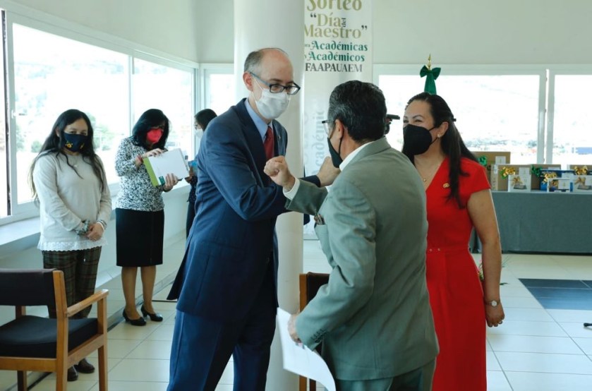 - Durante el Gran Sorteo “Día del Maestro” de la FAAPAUAEM, el rector Carlos Eduardo Barrera Díaz exhortó al personal docente a vacunarse y reconoció su disposición y esfuerzo para dar continuidad al proceso de enseñanza-aprendizaje durante la pandemia.