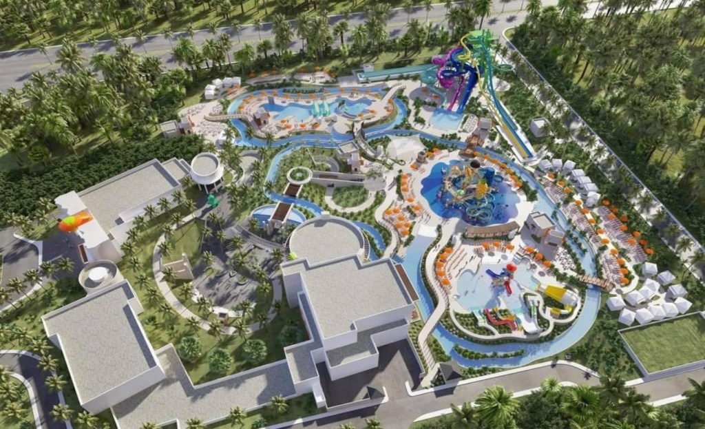 El complejo contará con el parque acuático más grande de la Rivera Maya, con grandes toboganes, albercas y juegos para toda la familia.