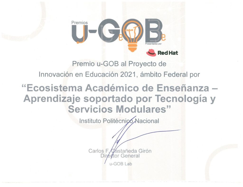 El número de alumnos inscritos, docentes al frente de grupos, aulas virtuales creadas, usuarios atendidos y capacitados, tecnologías empleadas y plataformas aplicadas, entre otros parámetros, demostró la eficiencia del soporte tecnológico del IPN y lo hizo acreedor al reconocimiento por parte de U-Gob en la categoría de Innovación en Educación.