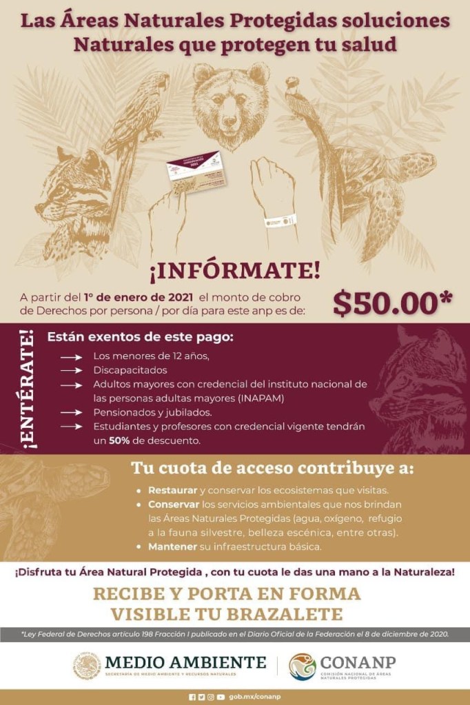Las autoridades piden a los visitantes portar de forma visible el brazalete que reciben con el pago de acceso. Toma en cuenta que los menores de 12 años, personas con discapacidad, adultos mayores (presentando credencial del INAPAM) no pagan el acceso y los estudiantes y profesores, reciben un descuento del 50%.