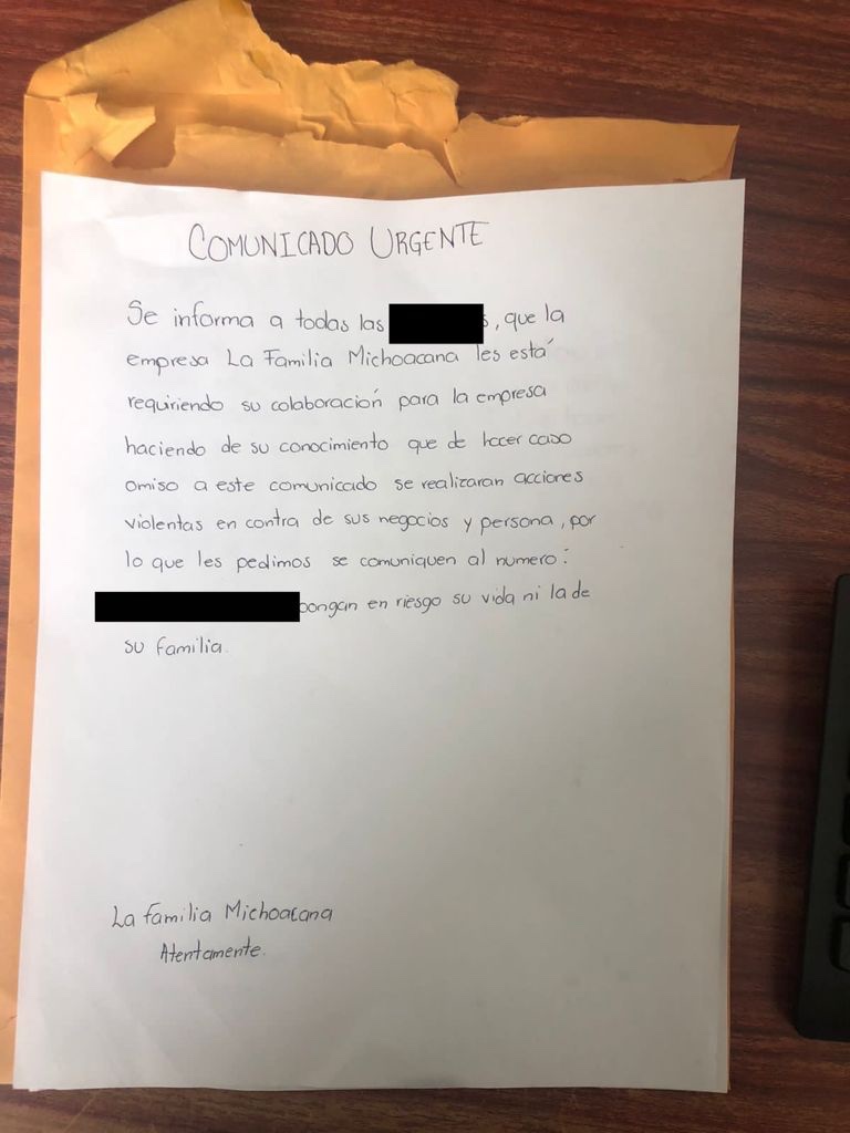 • 27 sobres bolsa tamaño carta que al interior contienen mensajes intimidatorios al parecer firmados por integrantes de la Familia Michoacana