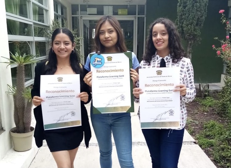 Ecatepec, Estado de México, 23 de junio de 2021.- Ante el distanciamiento social provocado por la pandemia de COVID-19 y con el propósito de fortalecer el aprendizaje a distancia de estudiantes de preescolar, Karina Alejandra Figueroa Osorio, Miriam López Pérez y Lidia Damayanti Dimas Santiago, estudiantes del Centro Universitario Ecatepec de la Universidad Autónoma del Estado de México (UAEM), desarrollan la plataforma virtual “Learning Gold”.
