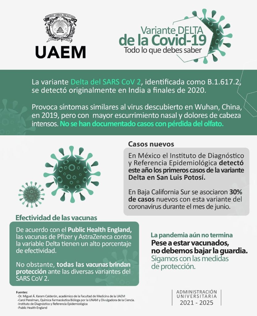 Para saber más de lo que hasta hoy se conoce de la variante Delta, se puede acudir al siguiente enlace: https://bit.ly/3jC5eCG