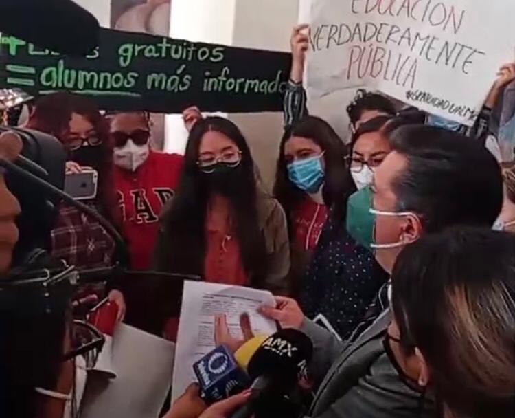 Ante Marco Aurelio Cienfuegos Terrón, secretario de Rectoría, la Asamblea Estudiantil entregó el documento en el que se exige la gratuidad de los libros de texto; la publicación en versión electrónica; la corrección de los errores en los libros e incluso, la integración de un cuerpo de expertos para su corrección y la elaboración de nuevos libros. El cuerpo de expertos debe ser aprobado por las y los estudiantes.