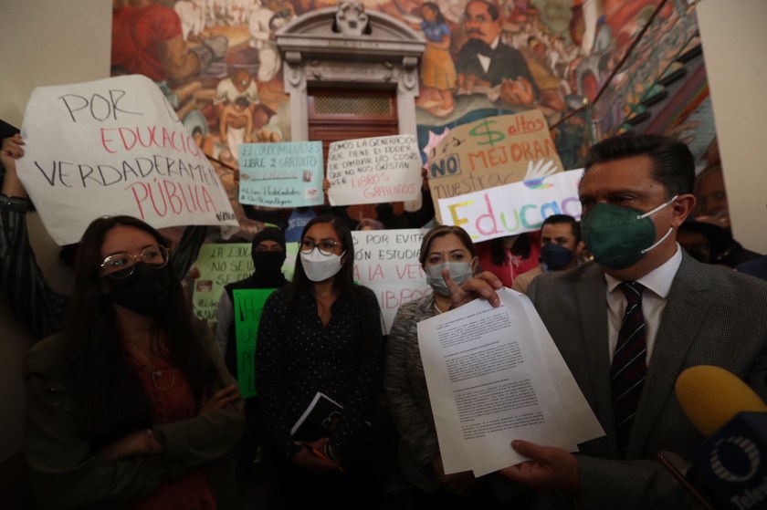 La Asamblea Estudiantil de la Universidad Autónoma del Estado de México (UAEMéx) entregó formalmente el día de hoy, a las puertas del Edificio de Rectoría, la petición de Gratuidad de los Libros de Texto para la Educación Media Superior, misma que se desprende del pliego petitorio recibido por el doctor Carlos Eduardo Barrera Díaz -en calidad de aspirante a rector, el pasado 13 de abril de 2021- en el que también se destaca la trascendencia de otro punto, la Erradicación de la Violencia Sexual y de Género.