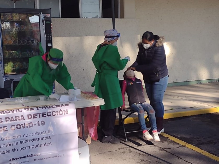El Instituto de Salud del Estado de México (ISEM) aplicó este lunes 700 pruebas rápidas de detección de Covid-19 en el estacionamiento del Gimnasio Universitario «Adolfo López Mateos».
