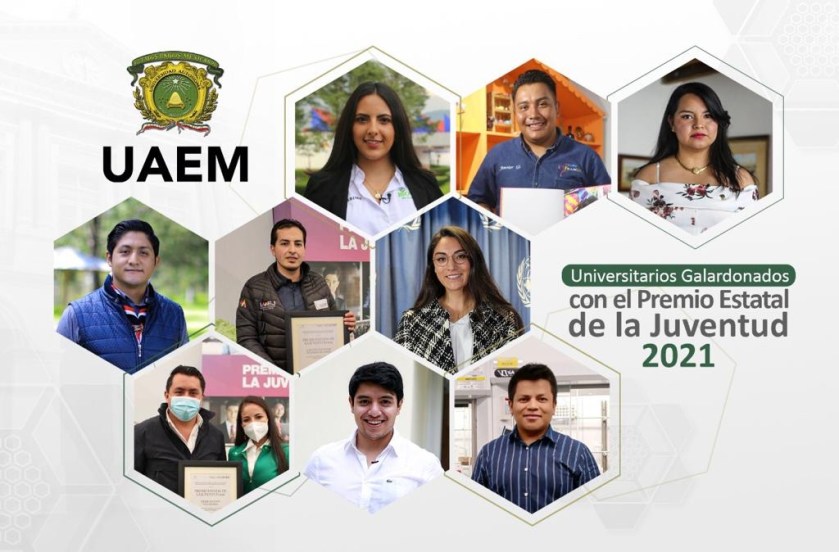 Estudiantes y egresados de la Universidad Autónoma del Estado de México (UAEM) fueron reconocidos con el Premio Estatal de la Juventud 2021, que entrega el Instituto Mexiquense de la Juventud del gobierno estatal, por sus acciones y trayectoria destacadas encaminadas a cumplir con los Objetivos de Desarrollo Sostenible (ODS) que impulsa la Organización de las Naciones Unidas (ONU).