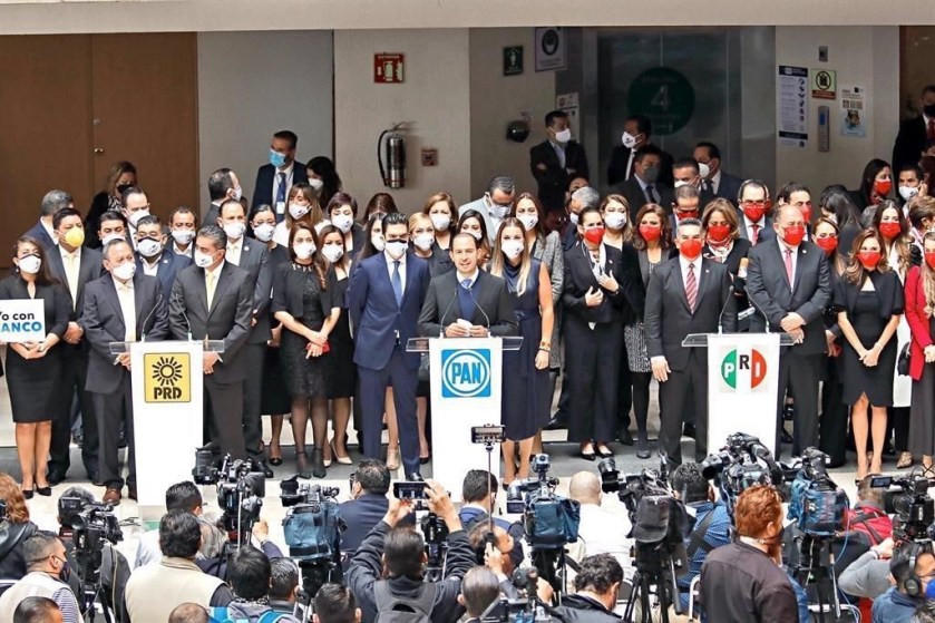 Luego de su reunión plenaria, en el auditorio de la Cámara de Diputados, del Congreso de la Unión, Mario Cortés, Alejandro Moreno y Jesus Zambrano, líderes del PAN, PRI y PRD, respectivamente, coincidieron en que durante el proceso electoral 2021 no solamente enfrentaron a sus oponentes, “sino también al presidente de México y al crimen organizado”.