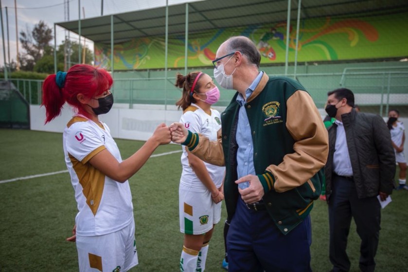 Al reunirse con las integrantes del representativo de tocho bandera, la entrenadora Topacio Conde explicó al rector Carlos Eduardo Barrera Díaz las rutinas y estrategias de entrenamiento; asimismo, se habló del trabajo que la entrenadora universitaria desarrolla con la selección mexicana de esta disciplina, que del 6 al 8 de diciembre participará en el Campeonato Mundial de Flag Football, en Jerusalén, Israel.