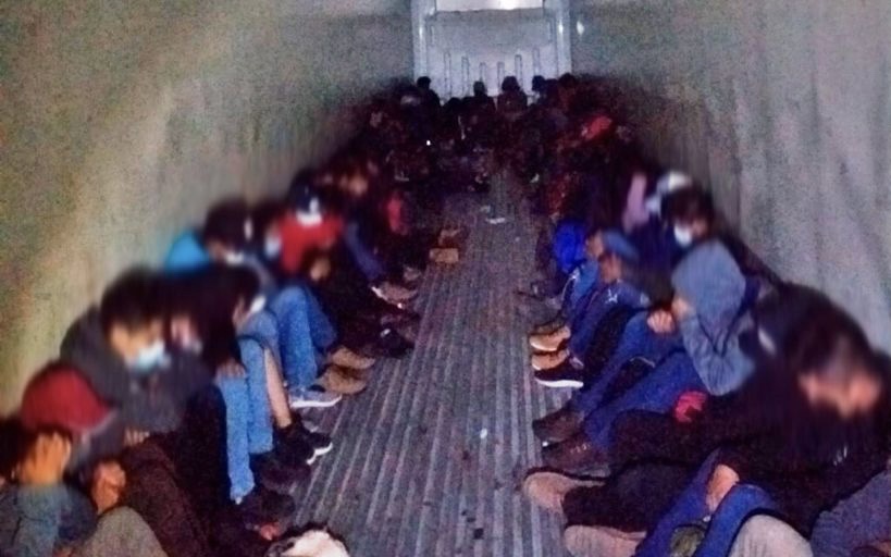Ante la actitud sospechosa de los sujetos, los elementos del Grupo SERO les solicitaron llevar a cabo una revisión de rutina, misma que derivó en el descubrimiento de los 61 migrantes en la caja del tráiler.
