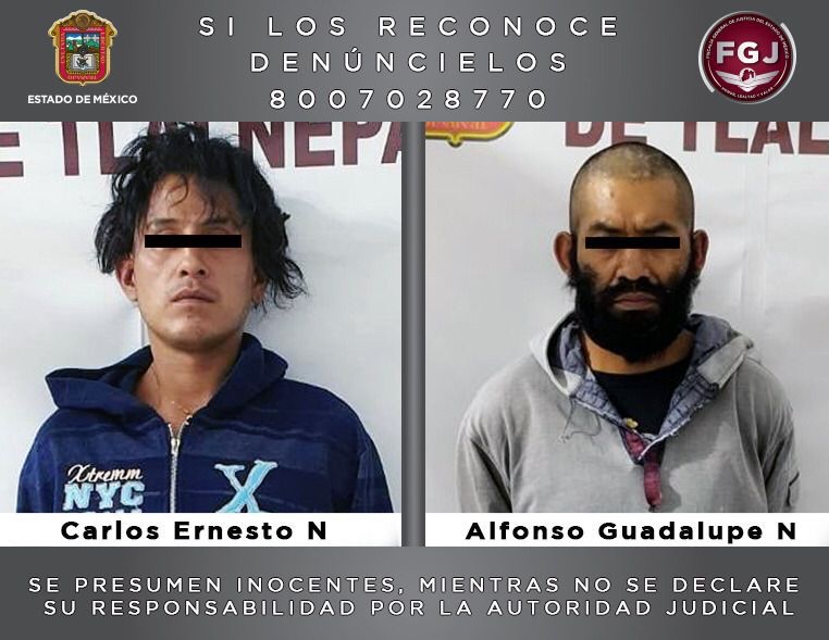 Nicolás Romero, Estado de México, 17 de septiembre de 2021.- Elementos de la Fiscalía Regional de Tlalnepantla de esta Fiscalía General de Justicia Estatal (FGJEM) aseguraron a Carlos Ernesto “N” alias “El Carpa” y a Alfonso Guadalupe “N” alias “Negro o Barbas”, quienes son investigados por su probable participación en el asesinato su vecina, una mujer de 65 años de edad.