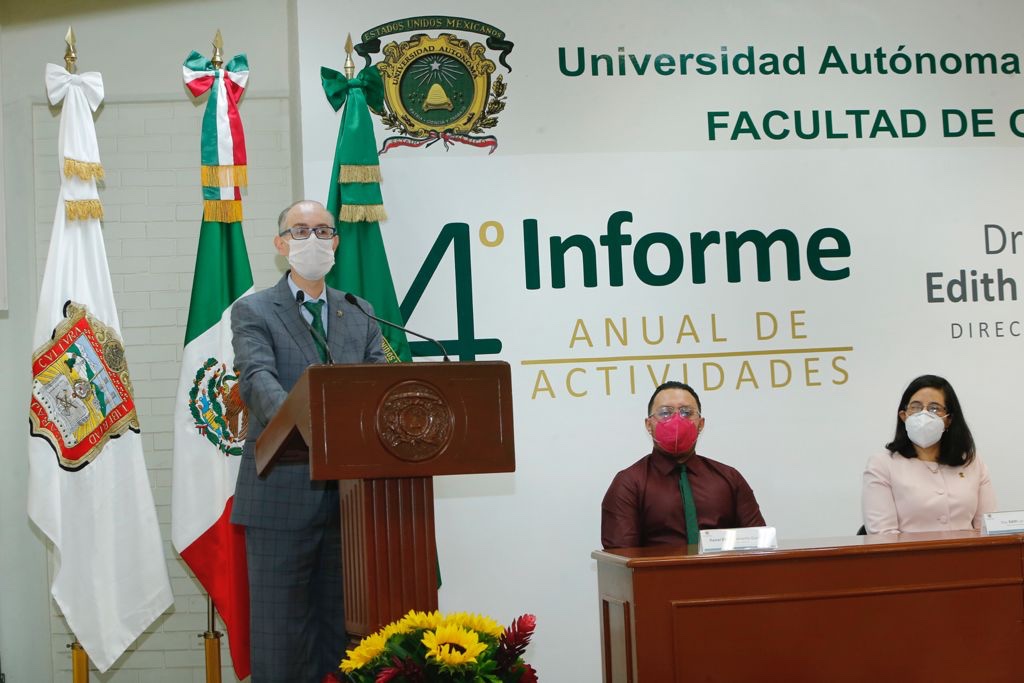 Al presidir el Cuarto Informe Anual de la directora de la Facultad de Odontología, Edith Lara Carrillo, el rector subrayó que su capacidad de adaptación y el elevado compromiso que ha mostrado la comunidad universitaria ha favorecido la reducción de indicadores como reprobación y abandono escolar.