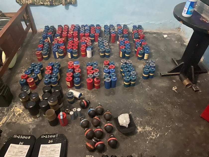 Al término del cateo fueron colocados sellos en las puertas del inmueble, el cual quedó asegurado y posteriormente, el material y el lugar fue entregado a la Fiscalía General de la República (FGR); por lo que hace a las granadas de gas y humo, estás quedaron bajo resguardo de la SEDENA.