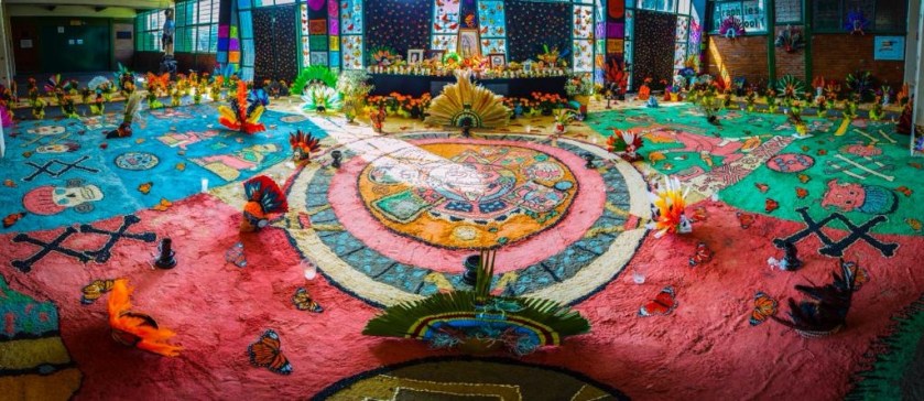 Cabe destacar que los alumnos realizaron penachos basándose en vestigios arqueológicos, los cuales fueron colocados en diversas zonas de la ofrenda. Asimismo, se colocaron fotografías del personal administrativo y docente que fallecieron durante el último año.