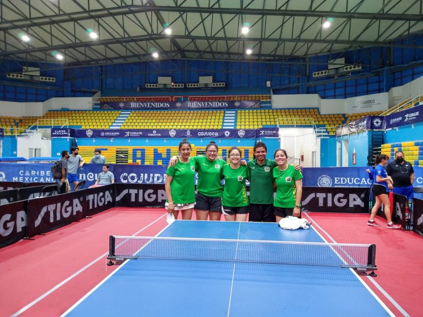 Cancún, Quintana Roo, 21 noviembre 2021.- La selección de tenis de mesa de la Universidad Autónoma del Estado de México (UAEM) consiguió medalla de oro en el Campeonato Nacional Universitario de la disciplina, dentro de la modalidad de equipo femenil, en la ciudad de Cancún, Quintana Roo, al vencer con marcador de 3-1, al representativo del Instituto Tecnológico y de Estudios Superiores de Monterrey, Campus Monterrey.