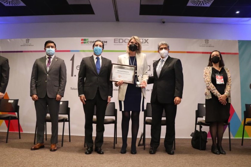 Huixquilucan, Estado de México, 24 noviembre 2021.- El Gobierno de Huixquilucan recibió el Primer Premio a la Innovación Pública Municipal 2021, que otorga el Comité de Planeación para el Desarrollo del Estado de México (Copladem), por la puesta en marcha e implementación de la Ventanilla Digital de Trámites Notariales, mediante la cual se digitalizaron y agilizaron los trámites entre la administración local y las notarías públicas, lo que permitió no enfrentar retrasos en esta materia ante el confinamiento causado por la covid-19.