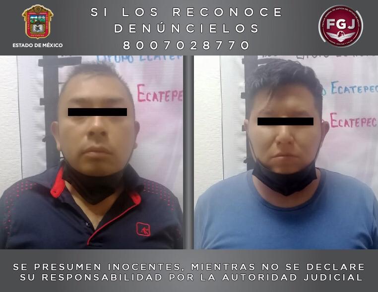 Los detenidos fueron identificados como Jesús “N”, quien laboraba como Policía Municipal de Ecatepec y José Víctor “N”, ex Policía Municipal de Nezahualcóyotl.