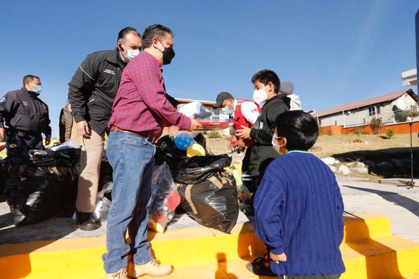 Toluca, Estado de México, 11 diciembre 2021.- Al entregar mil 98 paquetes de ropa, juguetes y cobijas a los habitantes del Ejido Loma Alta, del municipio de Zinacantepec, como parte de la “Colecta Invernal 2021”, la Universidad Autónoma del Estado de México (UAEM) confirma su vocación social al solidarizarse con quienes más lo necesitan.