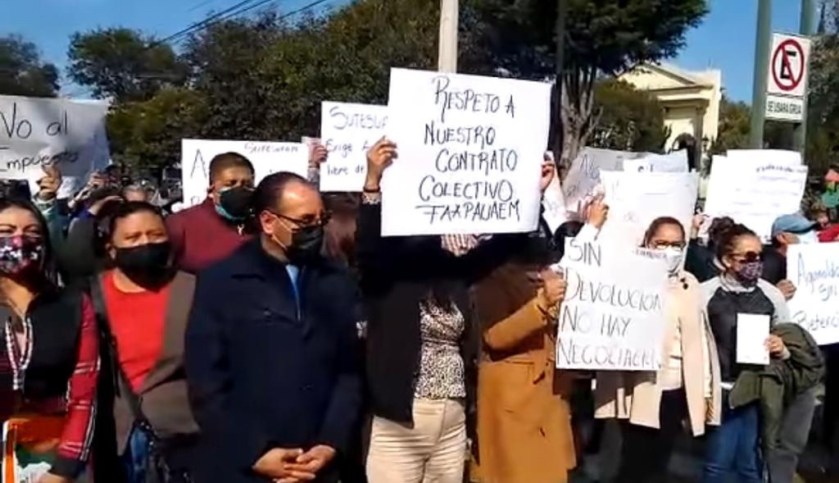 Demandaron el inmediato reintegro del impuesto que, de manera unilateral y sin mediar explicación alguna, se aplicó en los aguinaldos entregados en los los últimos días a docentes y trabajadores de la UAEM. “Sin devolución no hay negociación”, advirtieron los manifestantes.