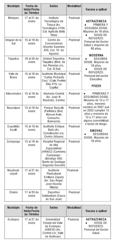 Los mexiquenses podrán acudir a vacunarse al módulo que le sea más accesible, sin importar que no esté ubicado en el municipio de su residencia.