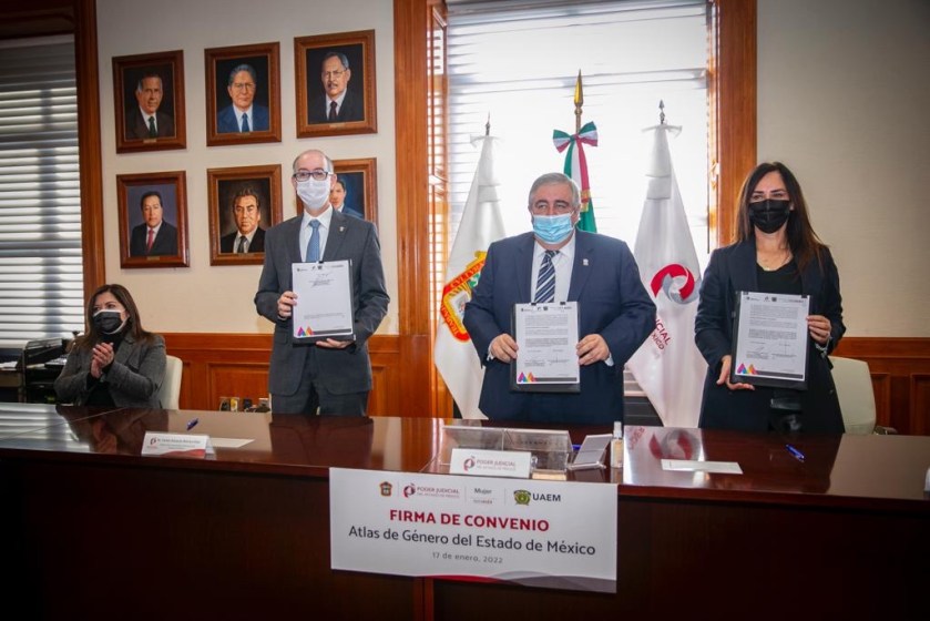 - La Universidad Autónoma del Estado de México, el Poder Judicial mexiquense y la Secretaría de la Mujer firmaron un convenio para la elaboración del Atlas de Género, el cual permitirá el desarrollo de políticas públicas transversales que beneficien a las y los mexiquenses.