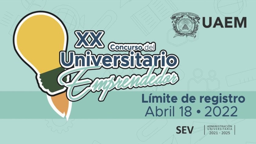 Toluca, Estado de México, 07 febrero 2022.- Para promover y reconocer el potencial emprendedor y el desarrollo de modelos de negocio, la Secretaría de Extensión y Vinculación de la Universidad Autónoma del Estado de México (UAEM) invita a la comunidad universitaria a participar en el XX Concurso del Universitario Emprendedor.