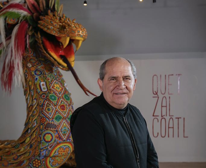 Toluca, Estado de México, 11 marzo 2022.- Con el propósito de darle voz a la cultura mexicana y los pueblos originarios, el artista César Menchaca encabeza un equipo de escultores, diseñadores, pintores y artesanos wixáricas que con chaquira elaboran piezas de gran formato como las que se presentan en la Galería Universitaria “Fernando Cano” de la Universidad Autónoma del Estado de México (UAEMéx).