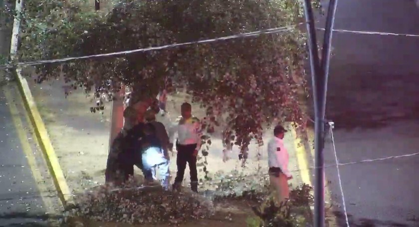 Metepec, Estado de México.- Durante la madrugada de este martes, las cámaras de videovigilancia del Centro de Mando de Metepec permitieron que la policía municipal detuviera a cuatro individuos en Avenida Tecnológico, que estaban cortando árboles para despejar la vista, presumiblemente de espectaculares y/o establecimientos comerciales, en un claro delito ecológico; por ello, se instruyó levantar la denuncia correspondiente a través de la Dirección de Medio Ambiente, a fin de que los presuntos delincuentes paguen ahora por sus actos.