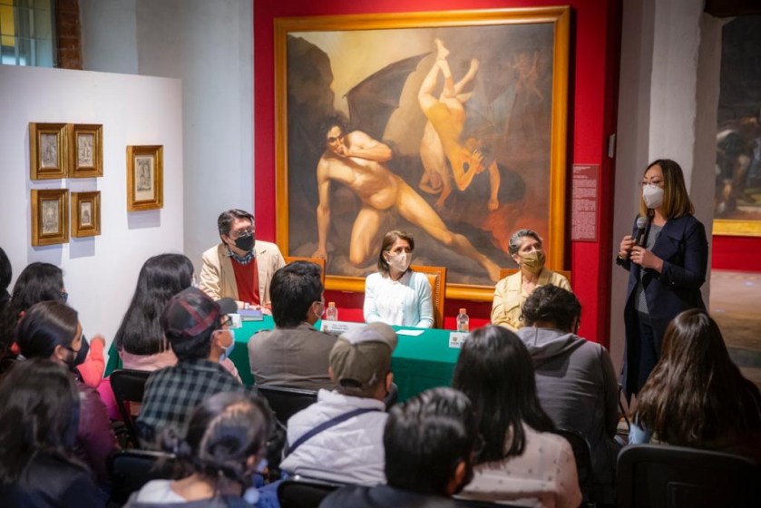Con la conferencia “Propuestas de intervención para el rescate de la pintura de caballete Marsias y Olimpo”, Ramírez Ramírez explicó a detalle los motivos por los cuales la obra debe ser restaurada para que el legado de Juan Urruchi prevalezca.