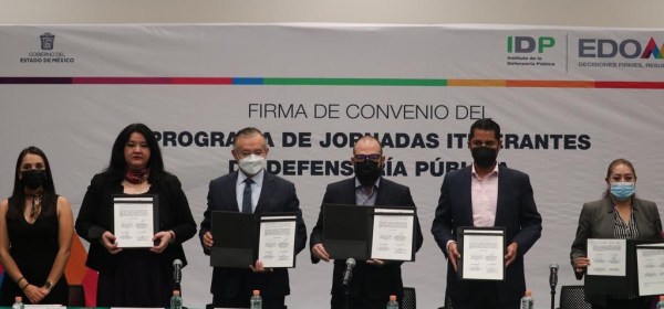 Firma Secretario de Justicia y Derechos Humanos, Rodrigo Espeleta, convenio de colaboración con 14 municipios para acercar las Jornadas Itinerantes del IDP. Garantiza Edoméx servicios