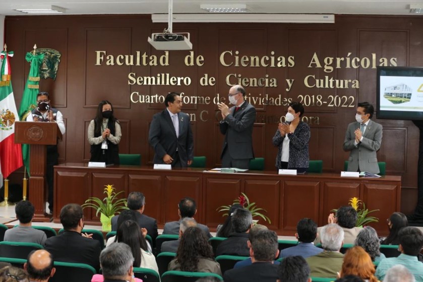 - El rector de la UAEMéx, Carlos Eduardo Barrera Díaz, encabezó el cuarto informe anual de actividades del director de la Facultad de Ciencias Agrícolas, Omar Franco Mora.